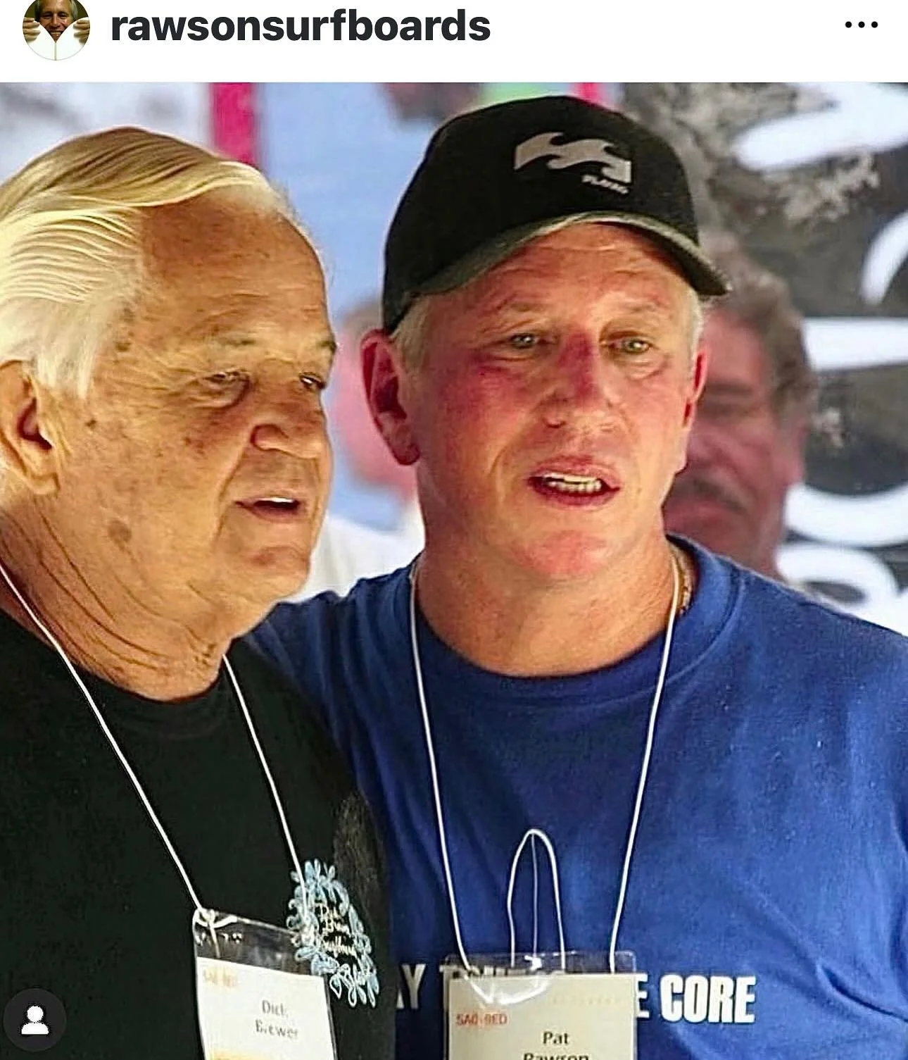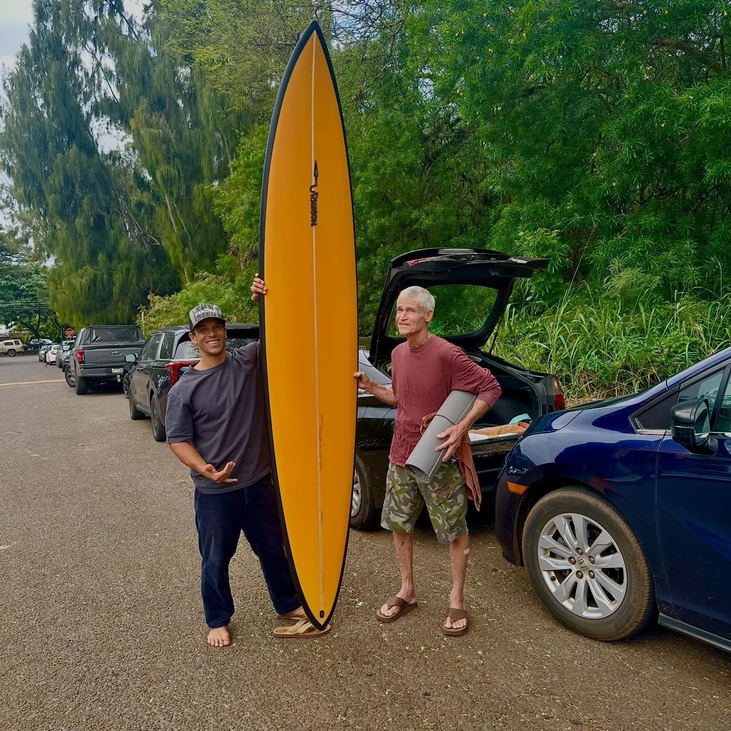 View fullsize Here is my @foundationtraining coach @coachjsalas with legend Jock Sutherland with his new 9’8 x 21 x 3.5 Sniper Pro Gun for large North Shore surf.